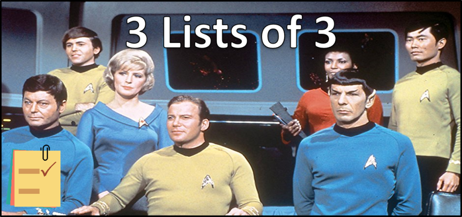 Jim handed me two Star Trek 3 Lists of 3 last month and somehow I only posted one of them. My bad. I don’t have a whip on hand, so I may have to flagellate myself with my back scratcher.