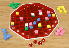 As soon as a player claims the top space in a column, no one can claim that number again. The game ends when one player has claimed the top spot for three numbers. Can’t Stop is such a great game. And Sid Sackson is a board game legend.