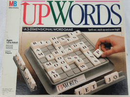 Upwords originally played on an 8×8 square board with 64 letter tiles. The board expanded to a 10×10 board to accommodate languages with longer words like German and Dutch. Eventually, the game shifted exclusively to the 10×10 board. Upwords plays similar to Scrabble. The big difference is that the letter tiles can stack on top of the ones previously used. All words must read horizontally from left to right, or vertically from top to bottom.