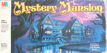I still quote the mechanical voice of the 1990s version of Mystery Mansion. The original game uses a modular board, one of the first times that a major board game company (Milton Bradley) used a modular board. Mystery Mansion came with 24 cardboard tiles representing different rooms in the mansion: 8 First Floor rooms, 8 Second Floor rooms, and 8 rooms in the cellar.