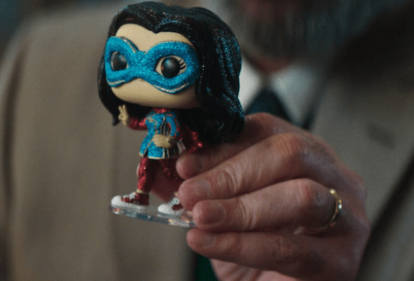 Yusuf Khan, Kamala Khan’s (Ms. Marvel’s) father, makes a guest appearance in “With Interest.” This episode’s story revolves around Khan and the bank where he works. Bank robbers begin a heist immediately after Khan denies Murdock a loan for Murdock & McDuffie (Matt’s new law firm). Convenient. Before then, Khan talks about his daughter Kamala, Jersey City, and Jersey City’s own superhero Ms. Marvel. He spills the tea about what Kamala is up to (visiting friends in California, which could be Kamala recruiting Kate Bishop in San Francisco), and I half-expected him to brag that his daughter and Ms. Marvel were one and the same when he dug out his Ms. Marvel Funko Pop.