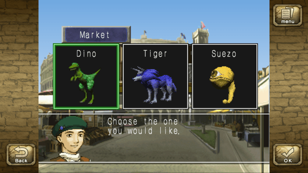 Monsters in the Market are seasonal. These monsters will be base species with not-so-great battle stats. Pictured above, we have a baseline Dino, Tiger, and Suezo. These monsters are good options for players who don’t have many CDs/PS1 game discs, or if you want something simple for a starter monster.
