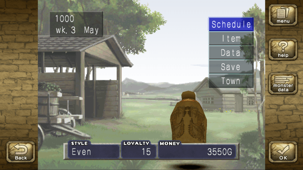 The Schedule option on the menu lets players either train monsters, battle in a tournament, or rest for one week.