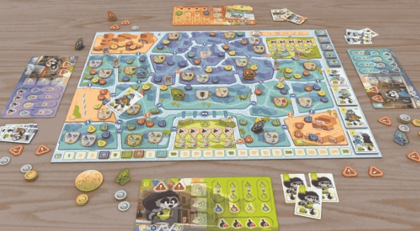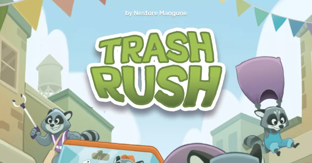 Raccoons work as trash collectors in Trash Rush. What’s not to love? Trash Rush is a quick to learn and streamlined experience. Players control their team of raccoon trash collectors by playing cards from their hands once per turn, but be careful. Whatever order you place your raccoons’ actions will be the order they will conduct those actions for the entire round. Despite a simple concept and easy-to-learn rules, there are plenty of strategic choices.