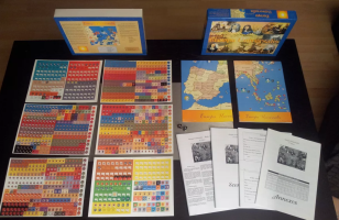 We the People simulates the American Revolution. I’m sensing a simulation theme with 1993 board games. Published by Avalon Hill and designed by Mark Herman, We the People was the first wargame to use cards as the primary means of controlling the pace and tempo of play; the card play introduces a strong element of fog of war through hidden card information.