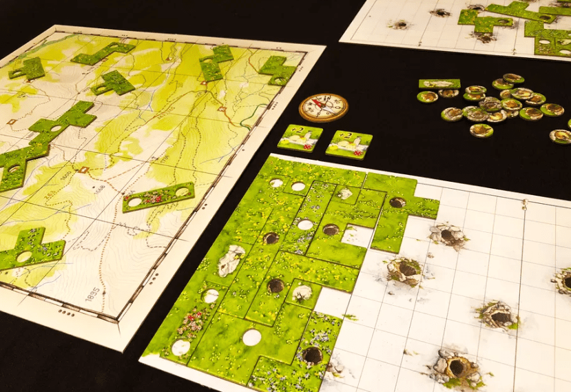 While many board games grant an advantage to seasoned players, Uwe Rosenberg’s Spring Meadow almost requires players to have a similar experience. The person who taught me and a couple of other noobs how to play Spring Meadow skunked us. Spring Meadow has an intriguing mechanism of players choosing a polyomino from a communal display and then placing the polyomino on their player board filled with holes. You’re trying to fill each row or column (depending on your board’s orientation), scoring points for each filled row or column with some added bonus points.