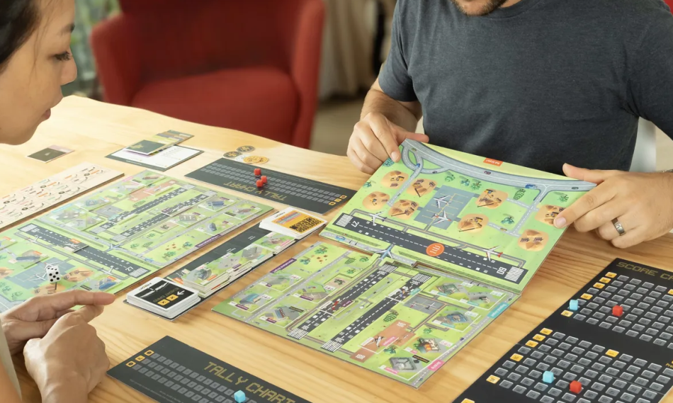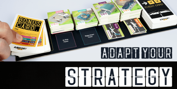 You score points in three categories: customer satisfaction, profits, and efficiencies. I love Airport Empire’s example of “an air traffic control tower is great to improve efficiency, but does little to improve your bottom line, where as maintenance hangars brings in revenue but go unnoticed by passengers.” I’m wondering if you don’t “need” these structures to run your airport. That’ll be fun. The player with the most points at the end of the game wins.