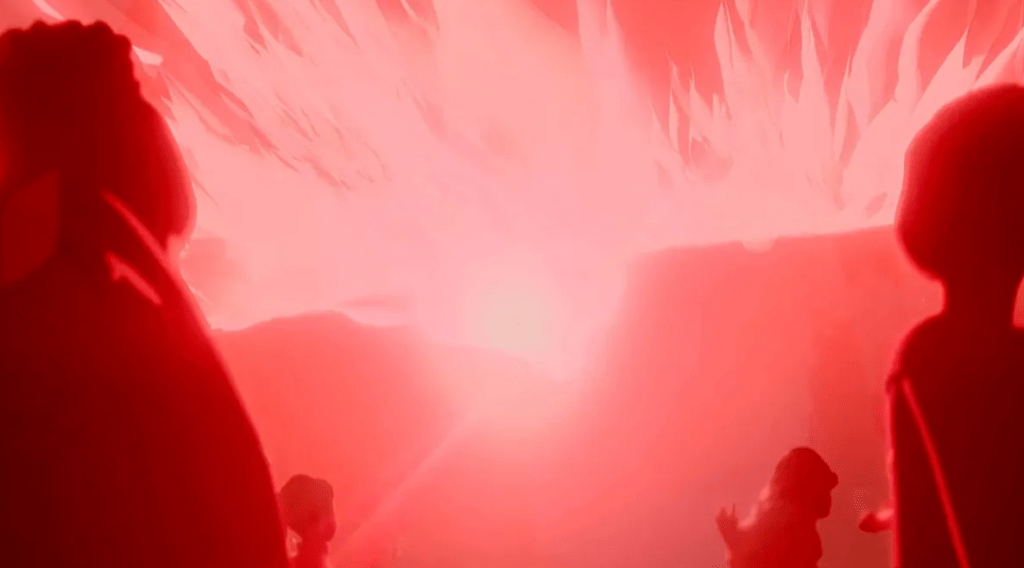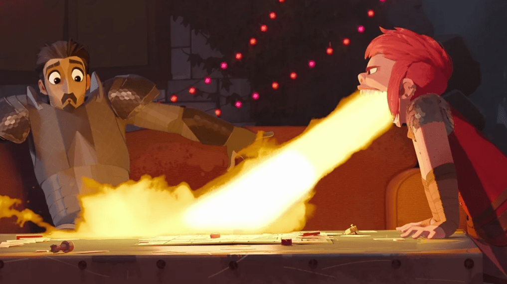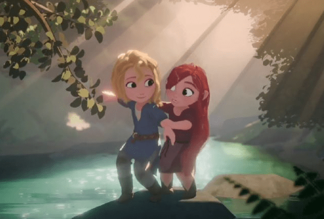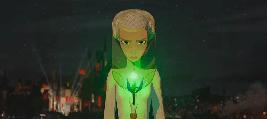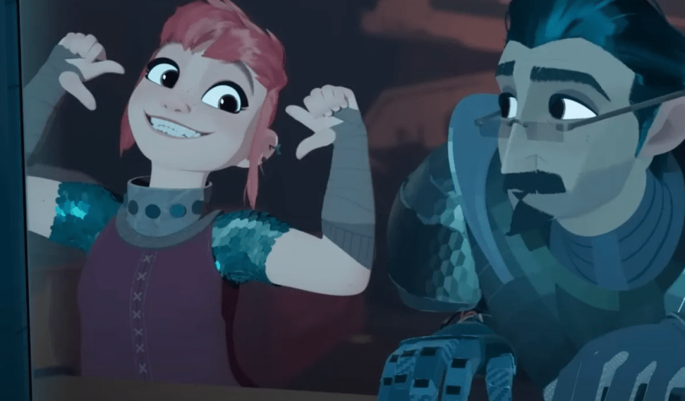 Nimona includes so much queer representation. Here are a few short segments. During the closing credits, Nimona literally breathes a rainbow flag of fire. The film’s color scheme tends to lean toward the colors of the transgender flag: pink, white, and light blue. RuPaul is one of the news anchors. RuPaul for the win. “Sashay away” turns into “A knight who might not be right.” I’m probably missing dozens more queer references. Feel free to add any you found in the comments.