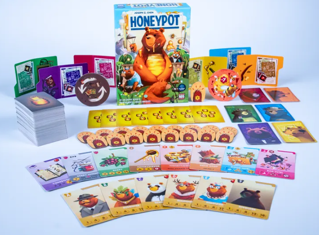 Flatout Games challenges AllPlay for those small box board games that feel like instant classics. Honeypot may just be another fantabulous game, by a designer (Joseph Z. Chen) who, despite being a new game designer, has an impressive resume.