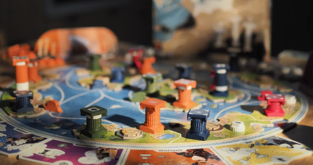 Watch out! Players are building monuments during this visually arresting game, For the Gods! The following pictures will feature For the Gods!’s prototype. I can only imagine what the final product will look like. Before I share my thoughts on this game, let’s hear from the publisher, Mighty Boards, and their description.