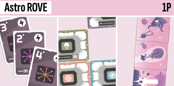 Astro ROVE is a solo spatial puzzler. The player must complete missions by using their movement cards to align ROVE’s modules in the proper pattern. As ROVE travels further, efficient use of movement points and module abilities becomes paramount to success. Thanks for the description, Button Shy.