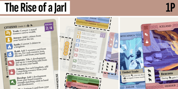 I’ll say thank you to Button Shy again for the description for The Rise of a Jarl, but that’ll be a blanket thank you. All future descriptions of Button Shy Games will be by the publisher. The Rise of a Jarl intrigues me. I don’t know of too many 4X solo games. It’s also an engine-building game with options. If multiple paths are equally valid for winning, sign me up. And the artwork for the games in this collection are what we’ve come to expect from Button Shy. Top notch.