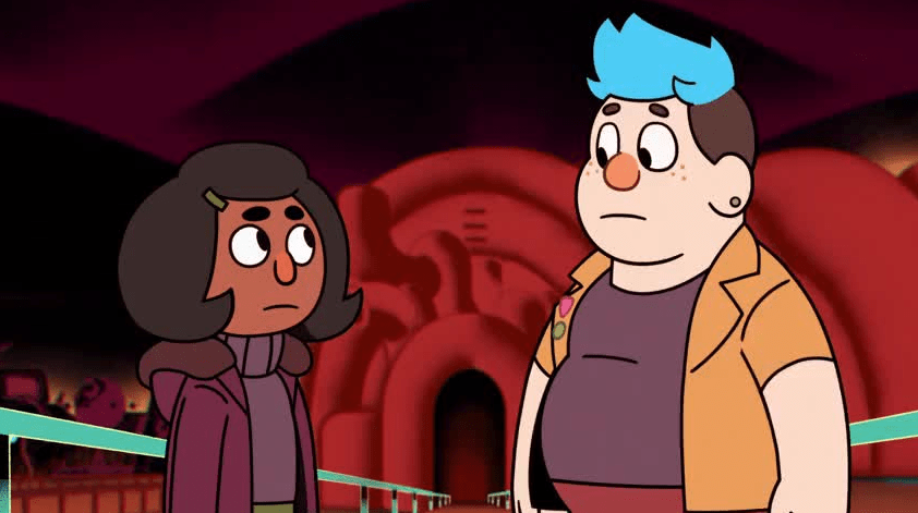 Early on, Barney hides his human identity. He finds it easier to be a lizard boy (B-Rex) instead of a human boy. Throughout “The Trials of Barney,” Barney lives as his authentic gender, and when he reveals himself to be a human, he accepts the final part of himself. And the crowd loves him for it. This is another subtle point Dead End: Paranormal Park makes. Many trans people begin by showing parts of themselves to others, and some of those parts are their gender identity, while holding back other aspects of themselves to fit in. Sure, Barney was always treated as a boy in the demonic gym, but he needed to find himself as a human boy.