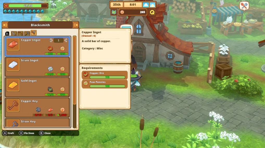 Players can pin items (if they find them in a store) to know how much of an item they need for an upgrade. This is standard stuff, but you’d be surprised how many games forget to include a pin object option. Kitaria Fables does a great job of incorporating good practices from other games with its user interface. The only reason I knock the game down a point is the Switch version. If you pick up Kitaria Fables on PlayStation 4 or Steam, go ahead and raise this score. The Switch version isn’t too difficult to navigate, but it’s lacking.