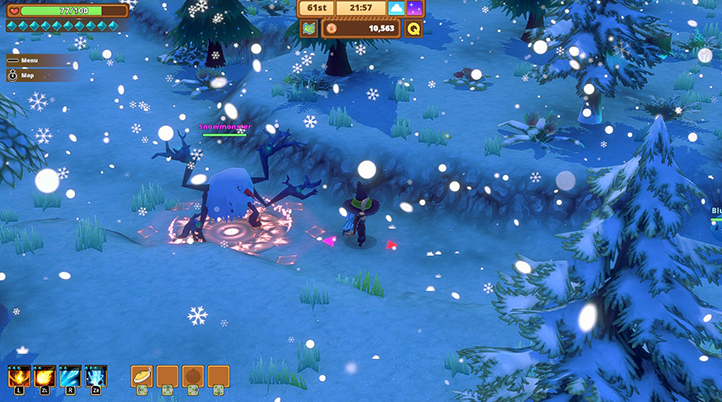 Kitaria Fables by Indonesian indie game studio Twin Hearts combines a farming sim like Stardew Valley with a mild adventure game. Players assume the role of a cat hero Nyanza (or Nyan for short), hence the name Kitaria, as Nyan upgrades his weapons and armor and learns new abilities to save the Empire.
