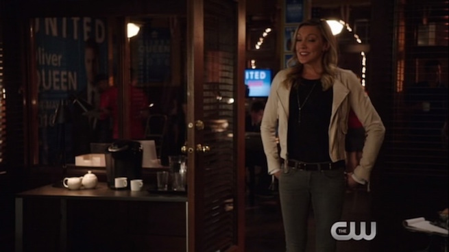 Remember when Sara gave Laurel her black jacket—or rather Laurel took Sara’s jacket? Well, we may have a reversal of this act. Laurel could hand Sara the white jacket she wore in this week’s episode before Sara jumps in the Waverider (time machine/space ship belonging to Rip Hunter). We also received several other elements that suggest Sara’s new moniker of White Canary. Sara wore a white outfit in the pit too.