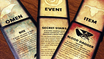 Omen cards stay in play and are linked with triggering the haunt. Most of these cards are pretty useful, granting the character that pulls them with a great ability, but after every drawn omen, you have to make a haunt roll. The player who drew the last omen card counts the total number of omens in play, and then they have to roll a higher number on the dice than there are omens.