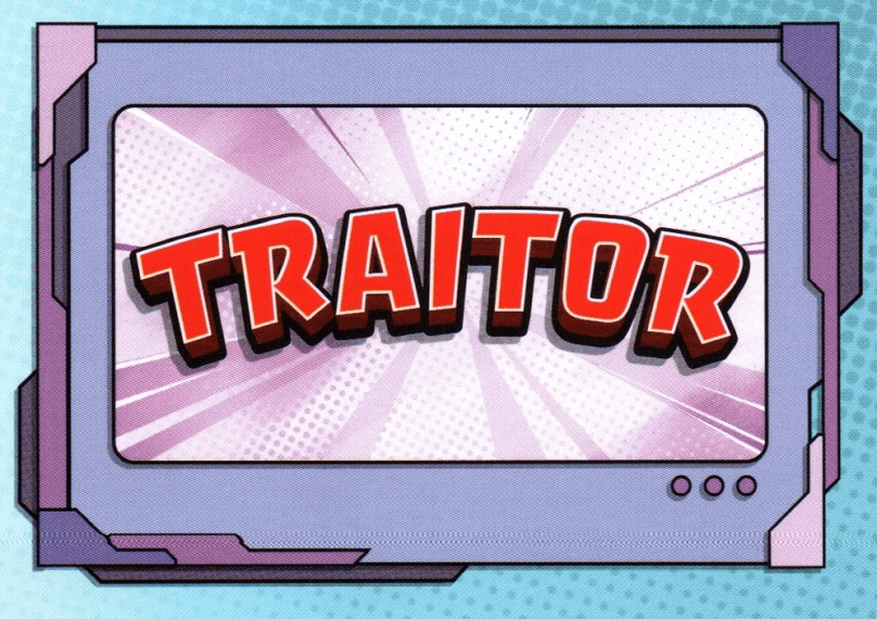 Once 2 Missions are completed, players guess the Traitor. If correct, gain 1 Wild token. Loyal Heroes still with an Eye token take damage until KO’d.Traitor is removed and now plays the Villain, drawing 2 Master Plan cards and playing 1 each turn.