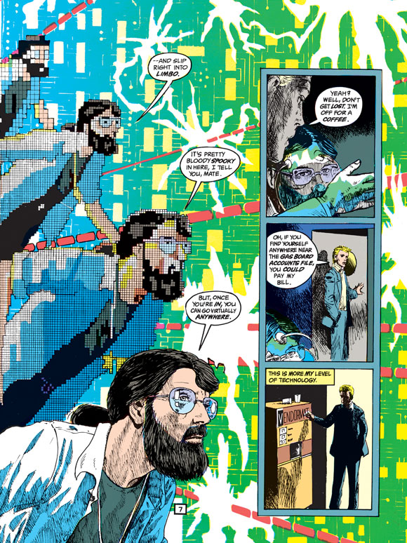 You might have noticed a sign that read Bradstreet Hall on an Ivy University class building, while Ritchie and John discuss their course of actions. The name Bradstreet should sound familiar to Hellblazer fans. He drew several iconic Hellblazer covers over the years. Check out one of his covers above.
