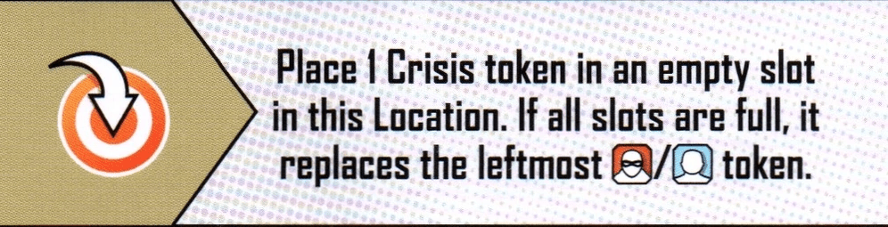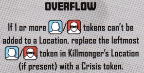 Overflow: If a civilian or thug token can’t be added to a Location, replace the leftmost civilian/thug token in Killmonger’s Location (if present) with a Crisis Token.