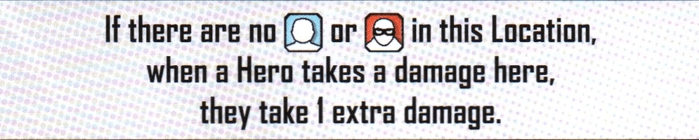 Constant Effect: If there are no Civilian tokens or Thug tokens in this Location, when a Hero takes a damage here, they take 1 extra damage.
