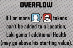 Overflow: If a civilian or thug token can’t be added to a Location, Loki gains 1 additional Health (may go above his starting value).