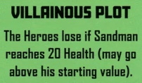 Villainous Plot: The Heroes lose if Sandman reaches 20 Health (may go above his starting value).