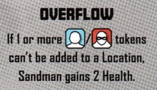 Overflow: If a civilian or thug token can’t be added to a Location, Sandman gains 2 Health.
