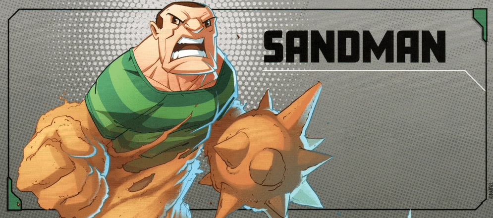 Sandman has a BAM! effect on less than half of his deck. With his Special Rules, a Hero getting KO’d doesn’t trigger another BAM! effect, so Sandman will use his BAM! effect far less than most Marvel United villains.