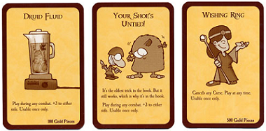 The cards themselves are hilarious. You can use weapons like the Chainsaw of Bloody Dismemberment or the Staff of Napalm and wear outrageous gear like the Boots of Butt-Kicking and the Horny Helmet. One moment you’re a human, male. The next, you can be an elven, female. Yes, there are sex changes in this game as well as Plutonium Dragons.