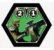 Resolve combat by initiative number and then play continues until one player’s HQ is left standing or if someone runs out of tiles. If the latter occurs, one final battle ensues, and the player with the healthiest HQ wins.