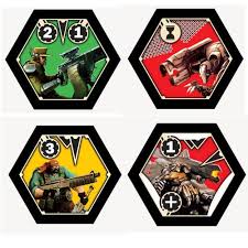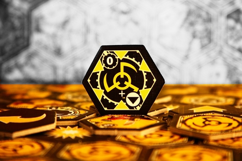 After each player has played their headquarters, players take turns and on their turn, players draw at random from their faction’s pool of tiles. There are two main types of tiles: instant actions and board tiles.