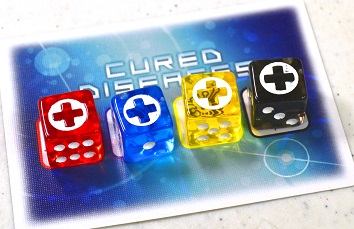 The phrases “Extra Strength Dice Game” and “Fast-Acting” grace the game box, but these are more than just tongue-in-cheek references to medication. Pandemic: The Cure does convert all the strategic fun and disease fighting of the original and puts it into a quick dice game.