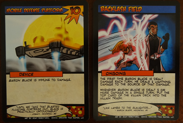 Villain Cards that Begin Game in Play: Mobile Defense Platform (10 HP): Baron Blade is immune to damage.