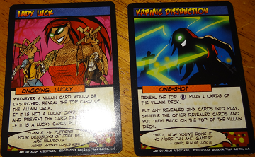 Most Fiendish Ongoing Card: Lady Luck: Whenever a villain card would be destroyed, reveal the top card of the villain deck. If it is not a lucky card, discard it and prevent the card destruction. If it is a lucky card, put it into play.