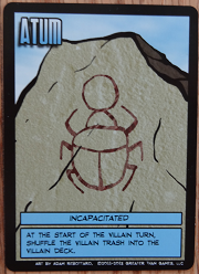 Atum’s incapacited ability can actually help the heroes. He shuffles the villain trash into the villain deck. If you don’t already have all The Ennead in play, he makes it less likely that more villain cards will get played. Of course, this is a moot point if you’re playing advanced mode. Still, his ability doesn’t hinder the team.