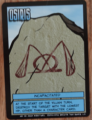 Finally, we come to the last villain Osiris. He would be included in the villains whose incapacited abilities don’t hurt you that much except that he can screw up Unity’s mojo. So long as you don’t have a hero—like Unity—who depends on smaller hero targets staying in play, Osiris isn’t that difficult either and should be taken down early too.