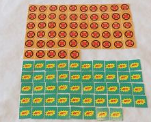 You search the X Mansion and all its six floors (or levels): the Attic, Second Story, Ground Level, Basement, First Sub-Basement, and Second Sub-Basement. Each level is color-coded, and each room starts the game with a token (matching the floor level’s color). If the token you draw is blank on the other side, you clear the room. If the token has something printed on the back of it, you have to deal with whatever’s printed.