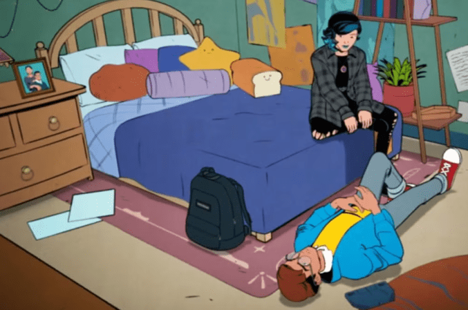 During the scene where Nico and Peter hang out in Nico’s room, we find Nico lives with a foster family. A photograph on Nico’s nightstand shows people who could be her biological parents. Hopefully, we’ll learn more about Nico and her magical history with her mother as seen in Marvel’s Runaways comics (and live-action series).