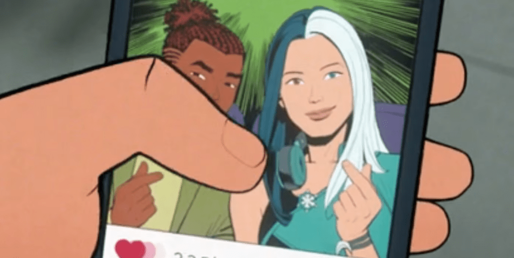 Blink and you’ll miss it. When Nico pulls up Harry’s social media, one can catch a glimpse of Luna Snow. Luna is a K-Pop superhero with ice powers in the comics.
