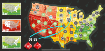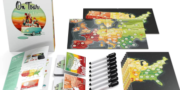 On Tour puts you in a rock band. You’re living the dream. You must schedule the band’s stops over your 100-day tour, visiting as many states (or countries depending on the map you choose) as possible. Roll the dice and chart a course with the most concerts.