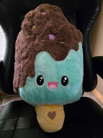 I use Chibithulhu more as a cuddle buddy, but I think they could go either way. I’ve seen a lot of pictures online of people showing off their Chibithulhu plushie collection on a couch or bed. So, I’m leaning more toward cuddle buddy. Chibithulhu fits perfectly on a shelf or in a display case, especially since they sit upright without support.